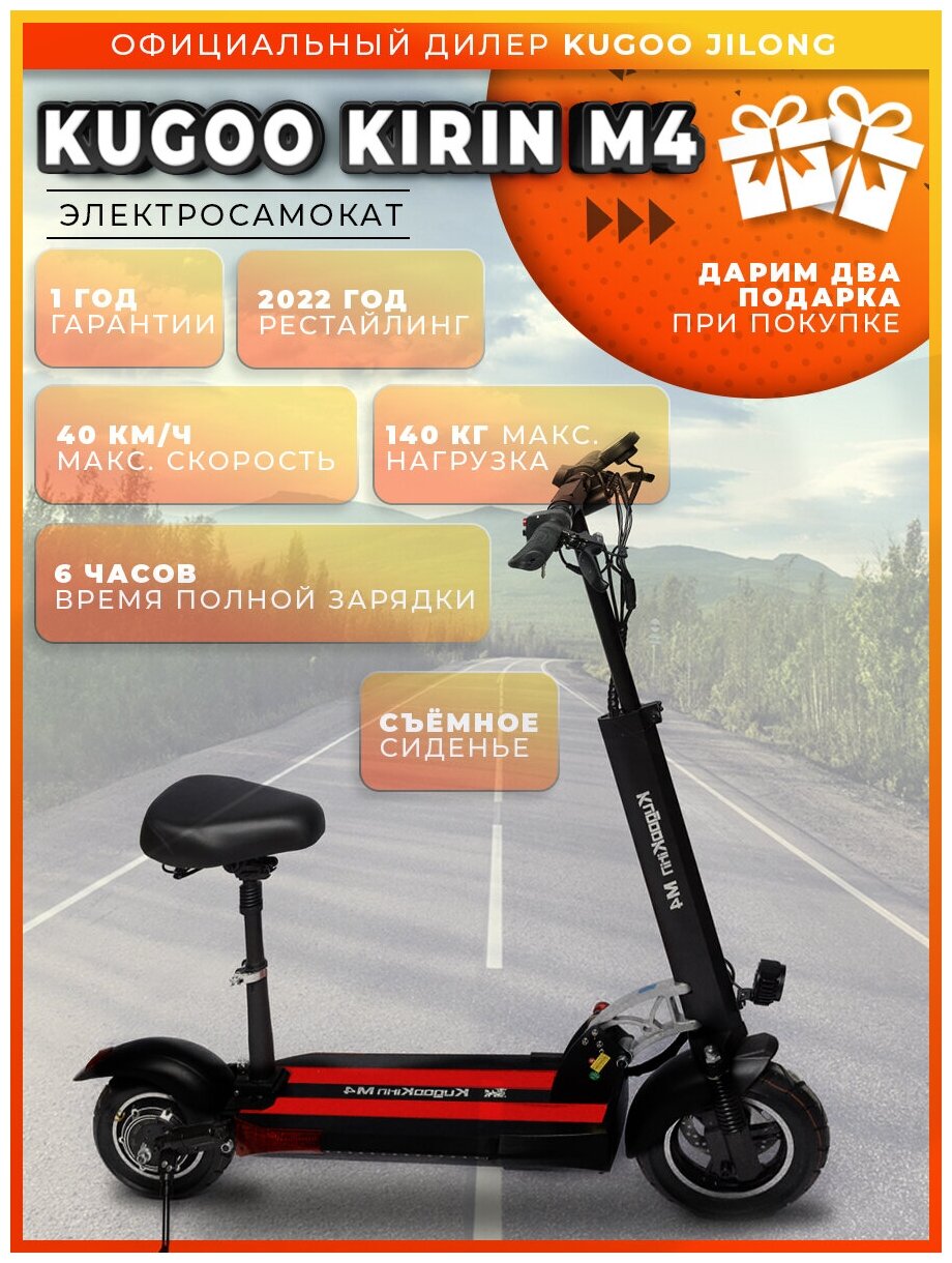 Электросамокат Kugoo Kirin M4 с сиденьем / Мощность 500 Вт / Подарок информация: