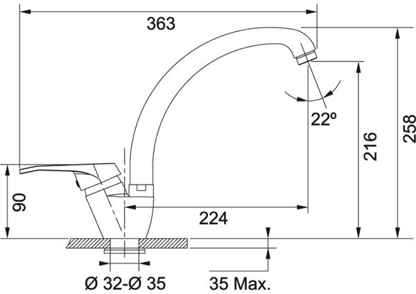 Смеситель для кухни (мойки) FRANKE Narew 35 Plus (хром, 115.0352.331), рычажный