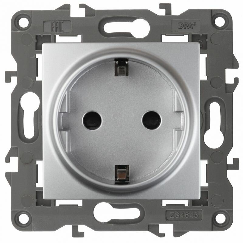 Розетка 1-м СП Эра Elegance 14-2102-03 16А IP20 16AX 250В 2P+E Schuko защ. шторки алюм. Эра, ЭРА Б0034274 (1 шт.)
