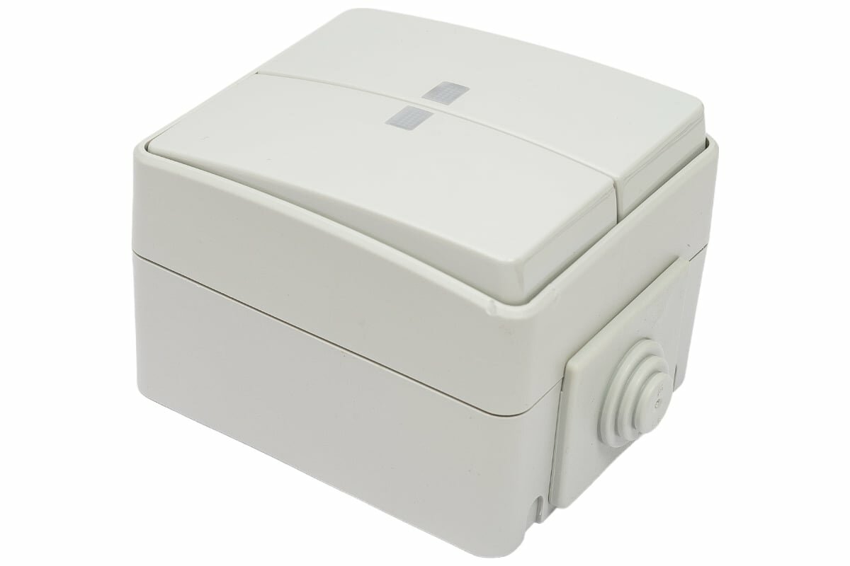 Выключатель ЭРА Эксперт двухклавишный влагозащищенный серый IP54 для открытой проводки