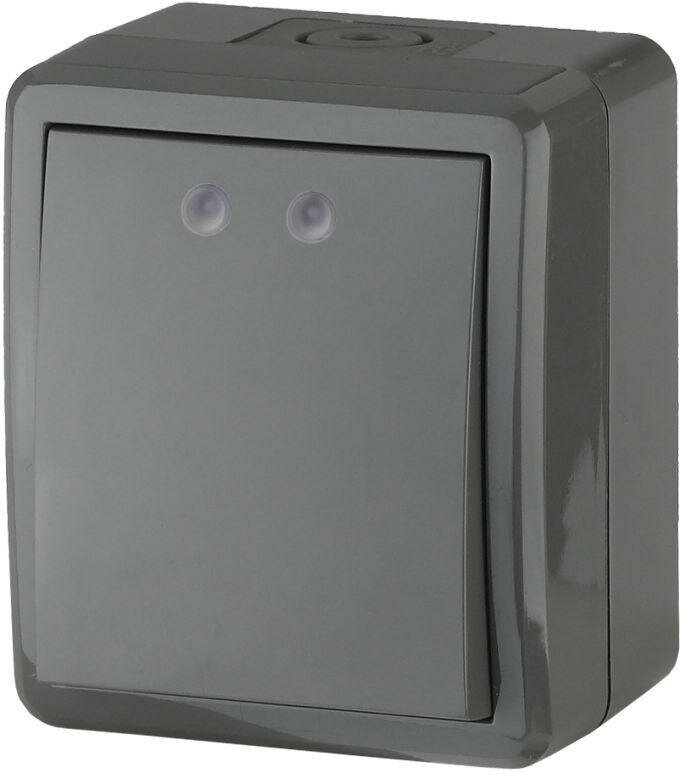 Выключатель ЭРА 11-1401-03 IP54, 10АХ-250В, открытой установки, Эксперт, серый Б0020670