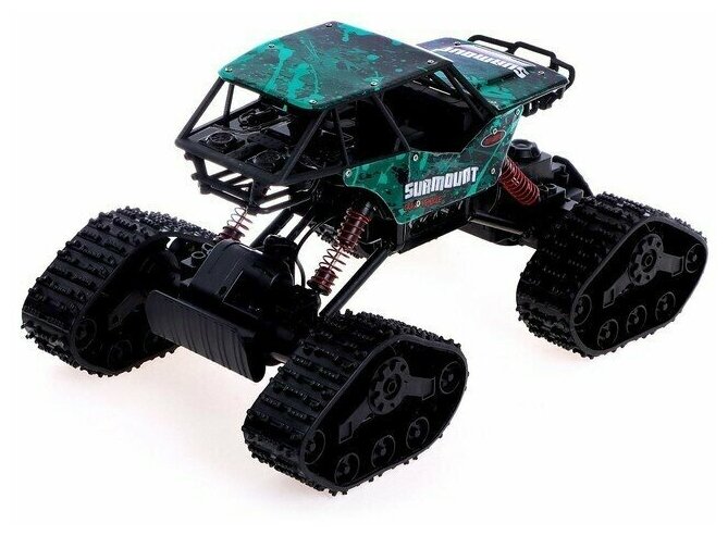 Джип радиоуправляемый Гусеничный вездеход, полный привод 4WD, работает от аккумулятора, цвет зелёный информация: