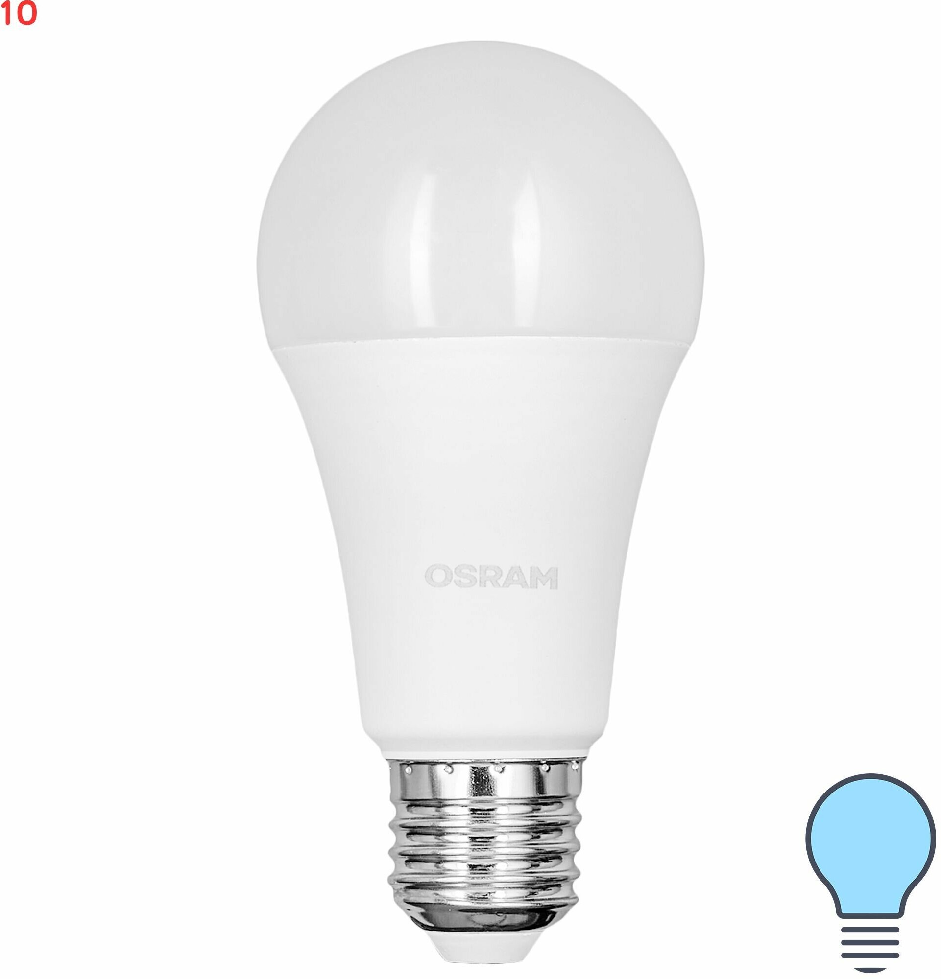 Лампа Светодиодная OSRAM Груша 15Вт 220В E27 1521Лм 6500К Холодный белый свет, уп. 10шт
