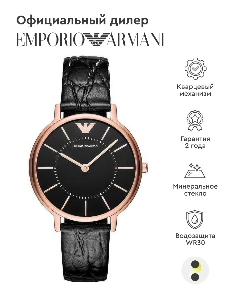 Часы наручные женские Emporio Armani AR11598 кварцевые на кожаном браслете черного цвета с минеральным стеклом водонепроницаемостью WR50 (5 атм)