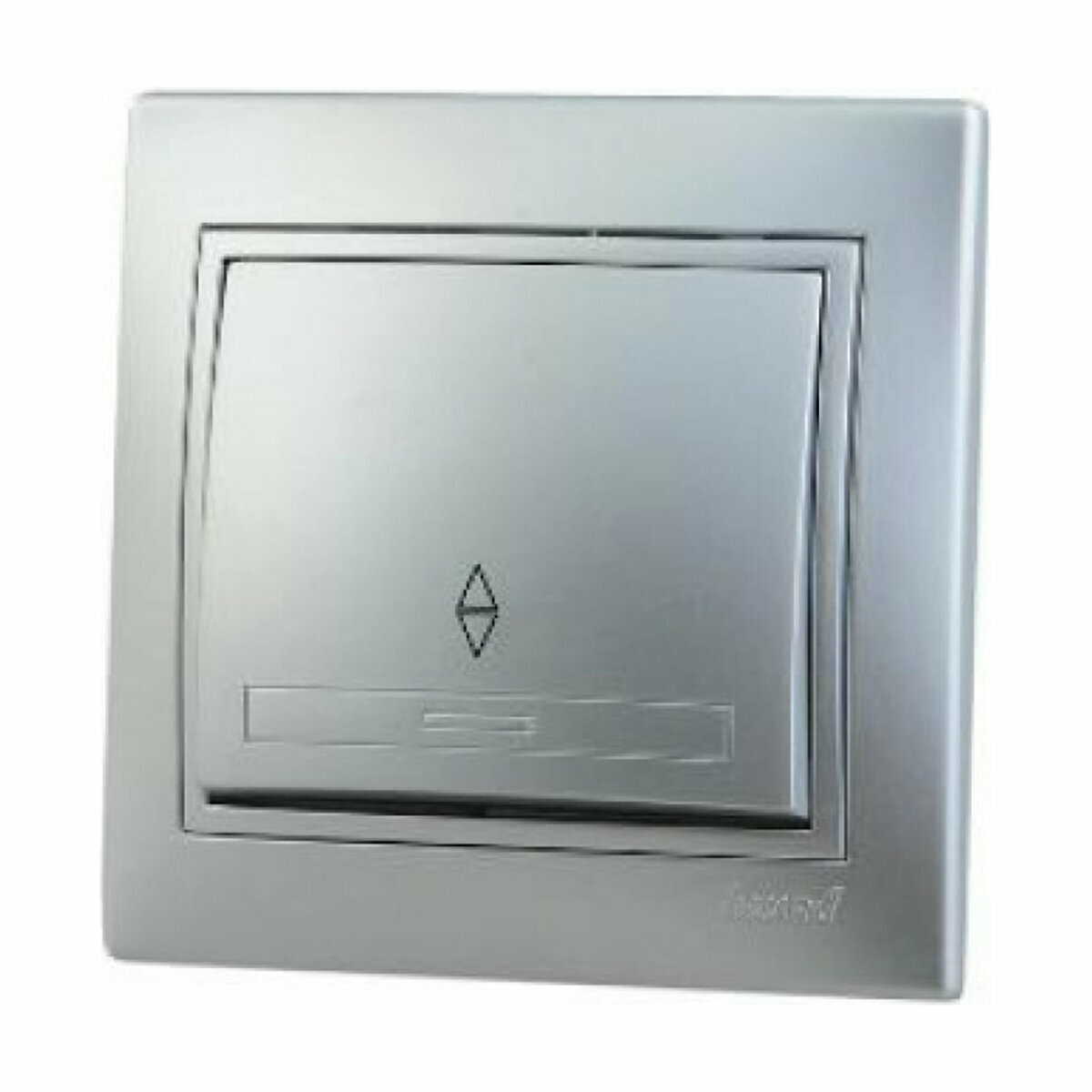Выключатель 1-клавишный проходной Lezard Mira, встраиваемый, в сборе, серый металлик информация: