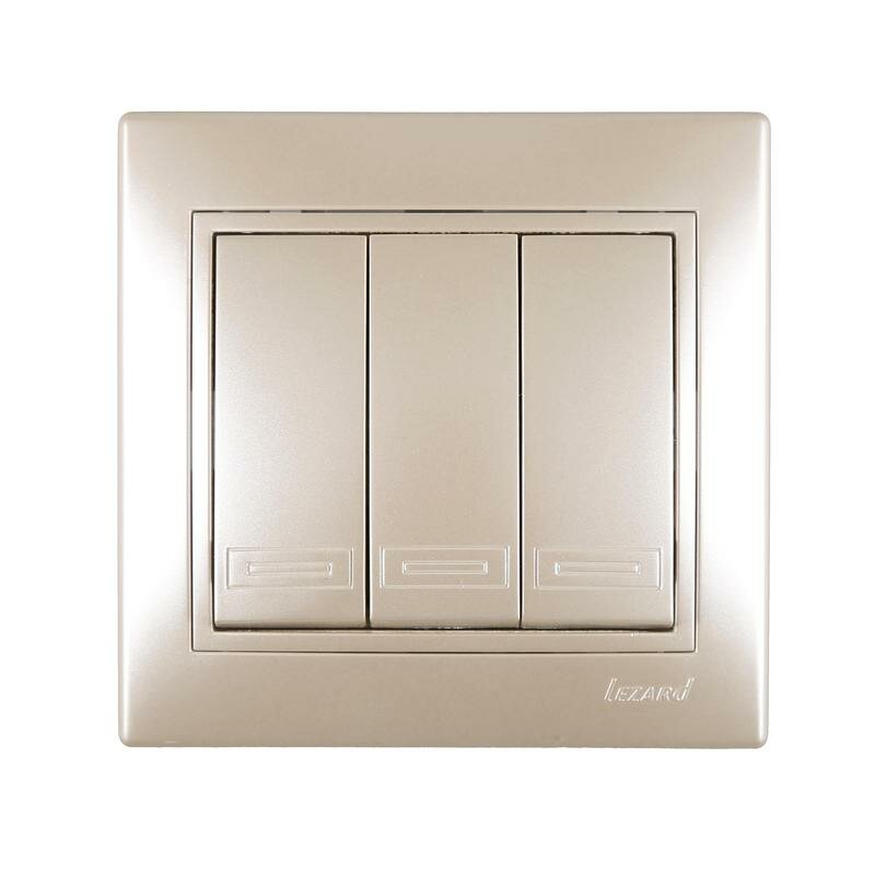 Выключатель LEZARD MIRA тройной Жемчужно-белый металлик/Светло-коричневый металлик 800 ₽