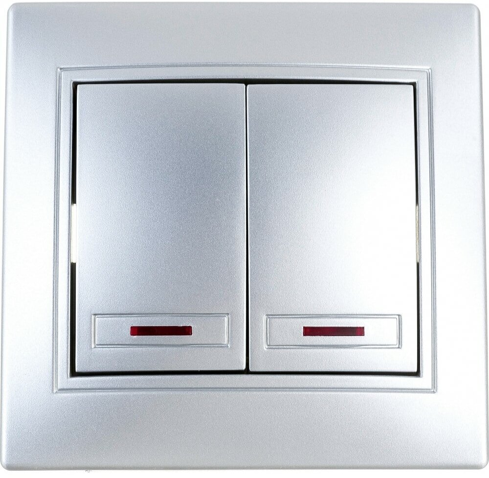 Двойной выключатель с подсветкой Intro 10А, 250В, IP20, СУ, Plano алюминий Б0030046 информация: