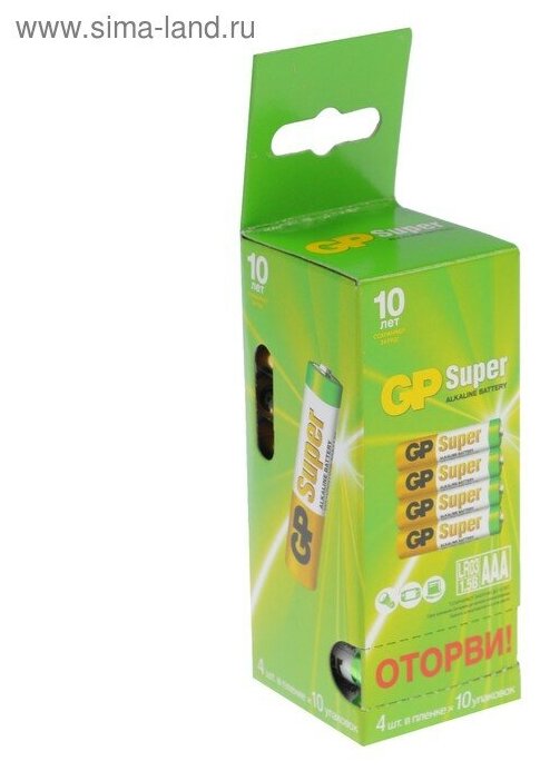 10 цен на GP Батарейка алкалиновая GP Super, AAA, LR03-40BOX, 1.5В, набор 40 шт.