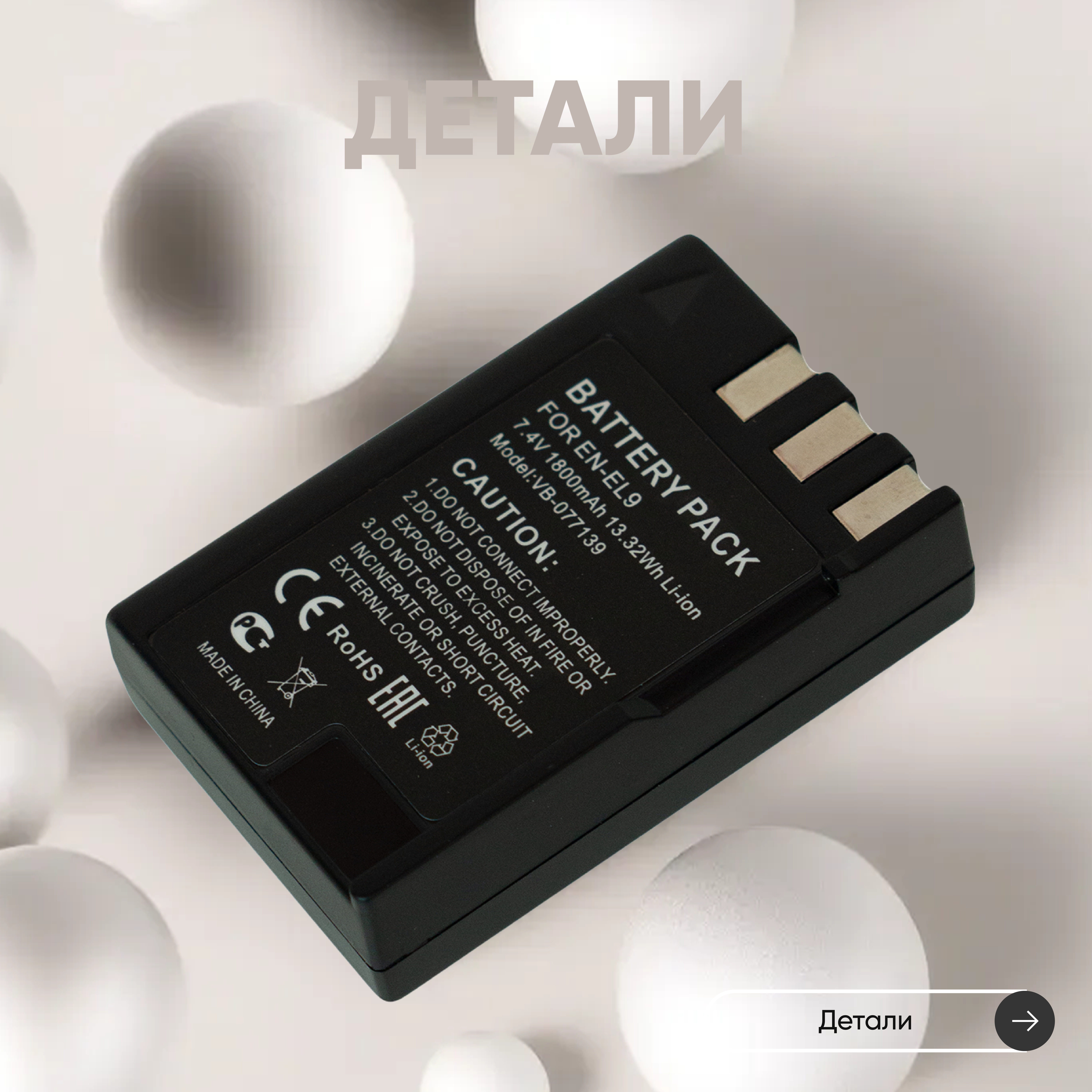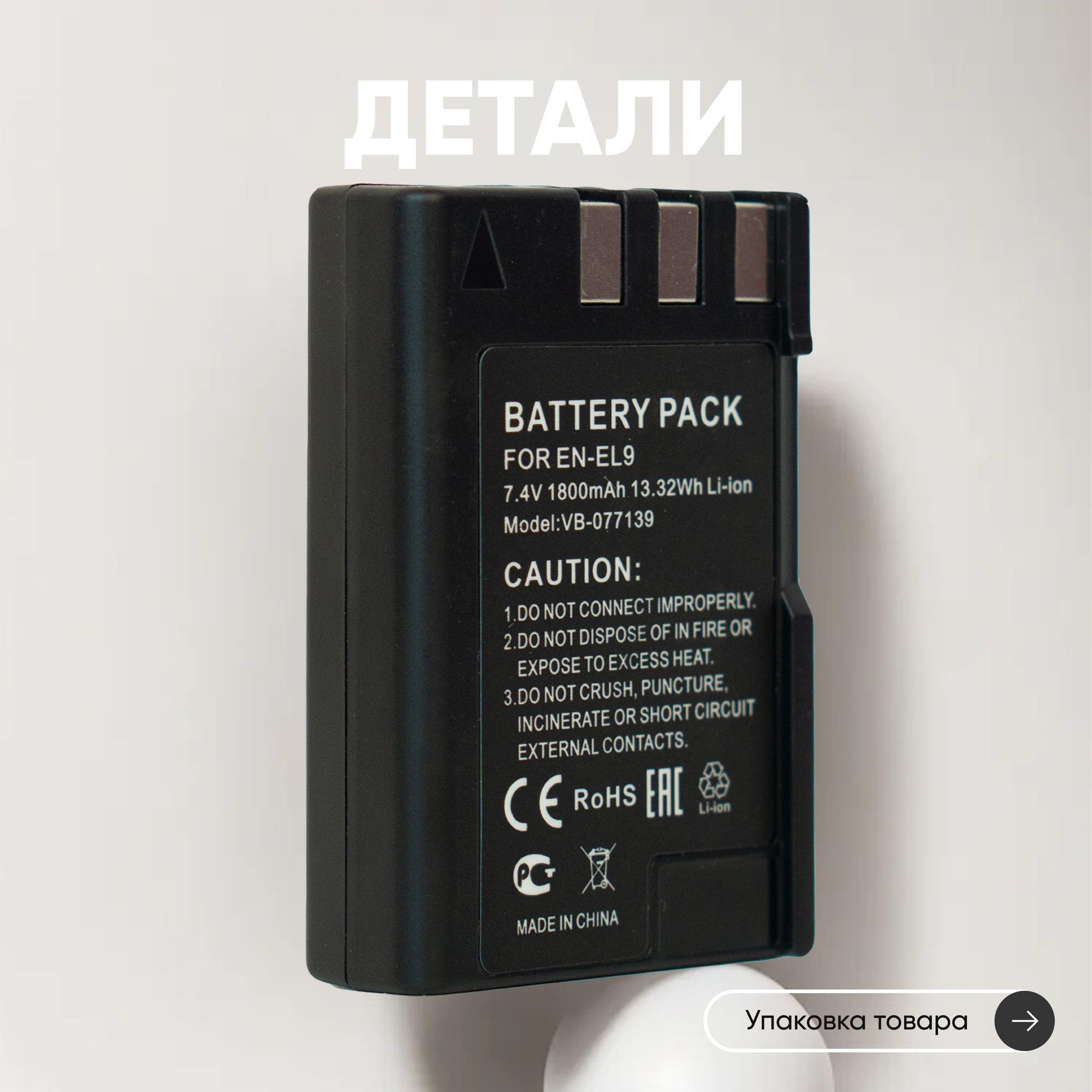 Аккумулятор (АКБ, аккумуляторная батарея) EN-EL9 для фотоаппарата Nikon D40, D60, 7.4В, 1800мАч, Li-Ion информация: