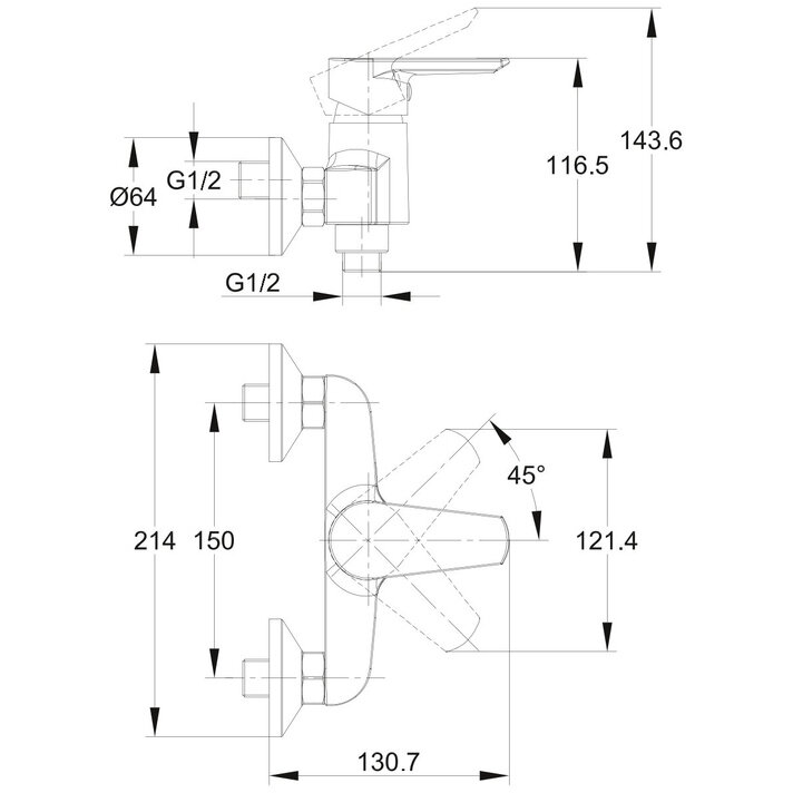 Смеситель Cersanit Vero 63062 для душа, хром /63062 4 367 ₽