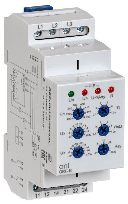 Реле фаз ORF 10 3ф. 2 конт. 220-460В AC ONI, IEK ORF-10-220-460VAC (1 шт.) информация: