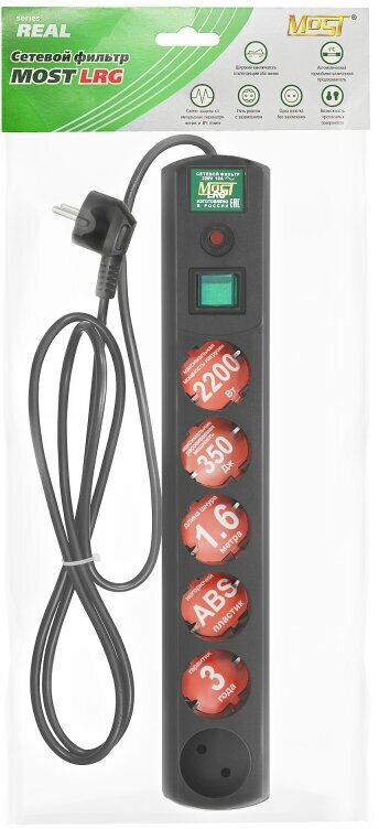 Сетевой фильтр MOST LRG 5 розеток 1.6 м черный информация: