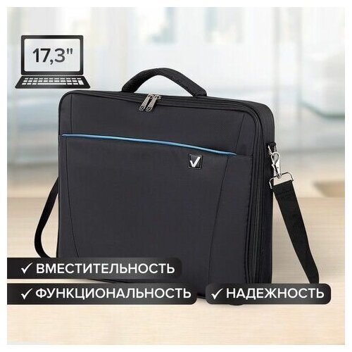 Сумка портфель Brauberg Practical с отделением для ноутбука 15,6", Blue line, черная, 29х40х7 см, 272603