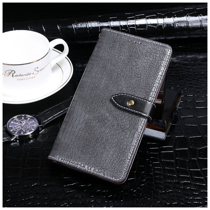 Чехол-книжка MyPads для ASUS ZenFone 6 (2019) ZS630KL с фактурной прошивкой рельефа кожи крокодила с застежкой и визитницей серый информация: