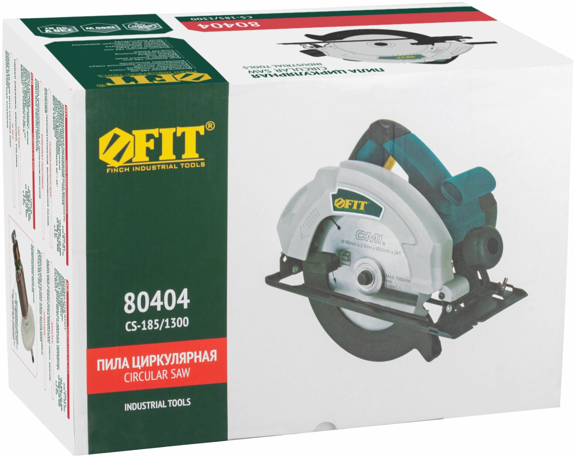 Пила дисковая 1300 Вт; 4500 об/мин; 185/20 мм; жел. опора; рез. накл.; блок шпинд.; коробка, FIT 80404 (1 шт.) информация: