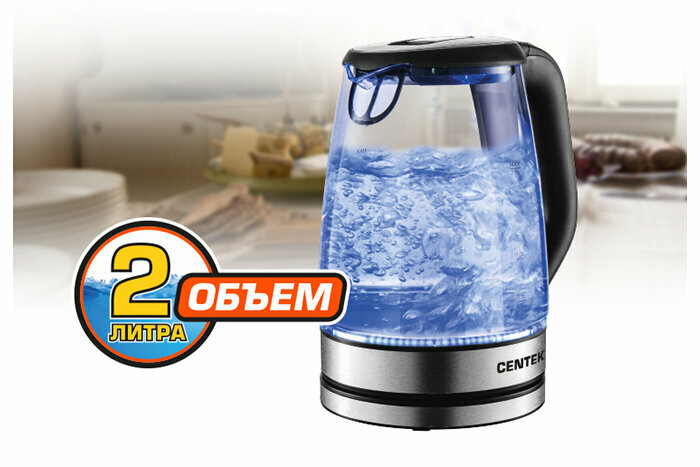 10 цен на Чайник электрический 1.7Л 2200ВТ LED подсветка диск стекло ЗАЩ от накипи перегр CENTEK