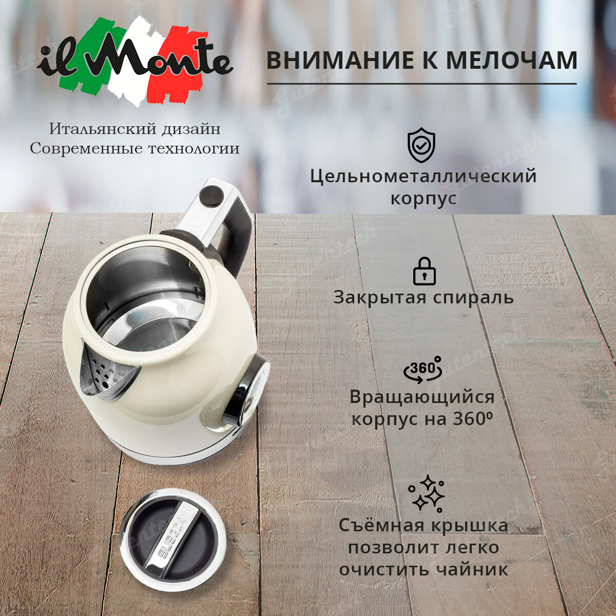Электрический чайник il Monte EK-1704 IVORY, слоновая кость, бежевый информация: