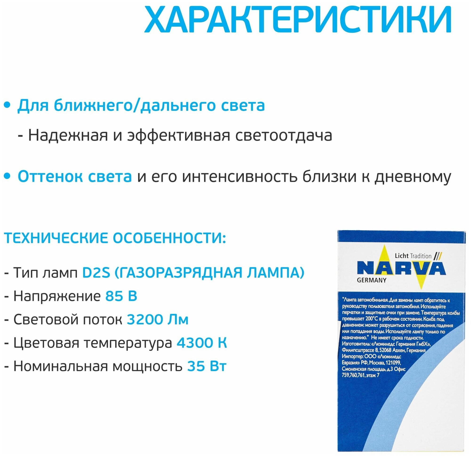 10 цен на Лампа D2s 35W D2s 35W C1 Narva арт. 84002 3000