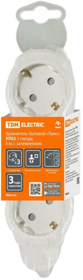 Удлинитель TDM ELECTRIC УЛ03 (SQ1303-0232), 3 розетки, с/з, 16А / 3500 Вт