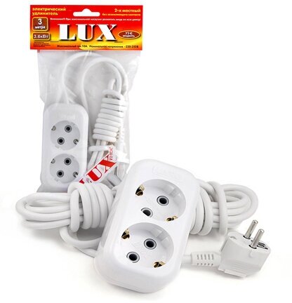 LUX Сетевой удл-ль LUX У2-е 2-местный с з/к, 250В 16А, 3м 4606400414544 .