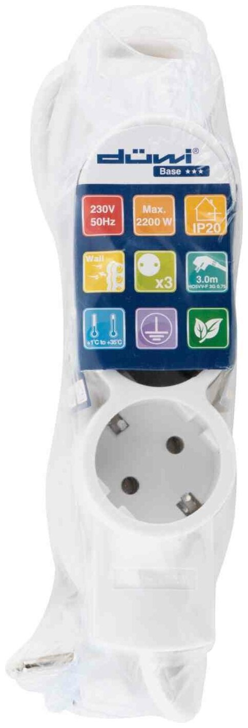 32005 2 Удлинитель бытовой, 3 гнезда, 3м, с заземлением, без выключателя, с держателем, 2200Вт, 10А, 32005 2, duwi, цена за 1 шт. информация: