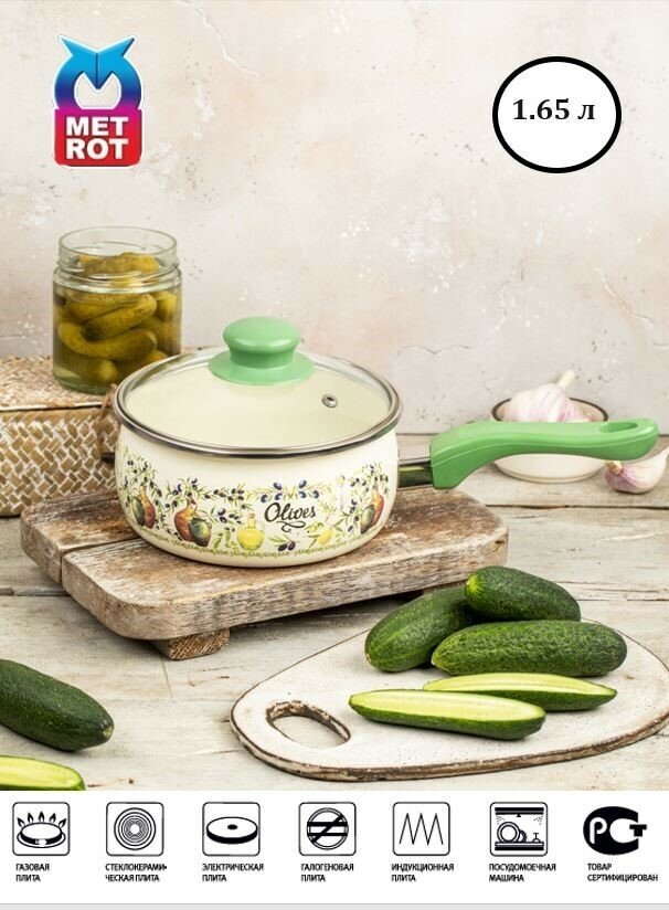 Ковш metrot олива 1,65л 16 см эмал. сталь с крышкой