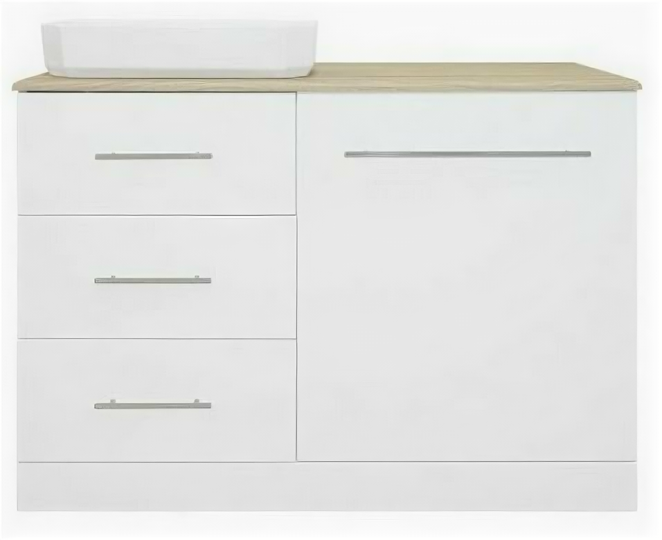 | Дополнительная информация | Оснащение | подвесы;Дополнительная информация | дополнительно крепится к стене;Модель | Респект 120;Серия | Респект;Вид раковины | накладная (чаша);Диаметр слива, см | 5;Донный клапан | приобретается отдельно;Линии форм основания под раковину | угловатые;Материал столешницы | МДФ;Линии форм раковины | баланс;Намеченные отверстия под смеситель | нет;Поверхность корпуса | матовая;Поверхность фасада | глянцевая;Раковина-столешница | нет;Расстояние от смесителя до слива, см | 22,5;Система хранения | дверки/ящики;Слив-перелив | установка невозможна;Тумба со столешницей | да;Форма раковины | прямоугольная;Цвет раковины | белый; |