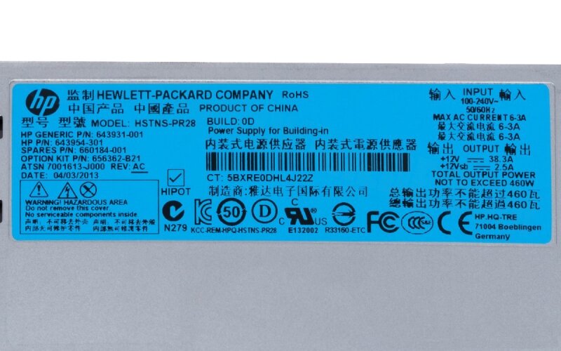 10 цен на Резервный Блок Питания HP 643954-301 460W