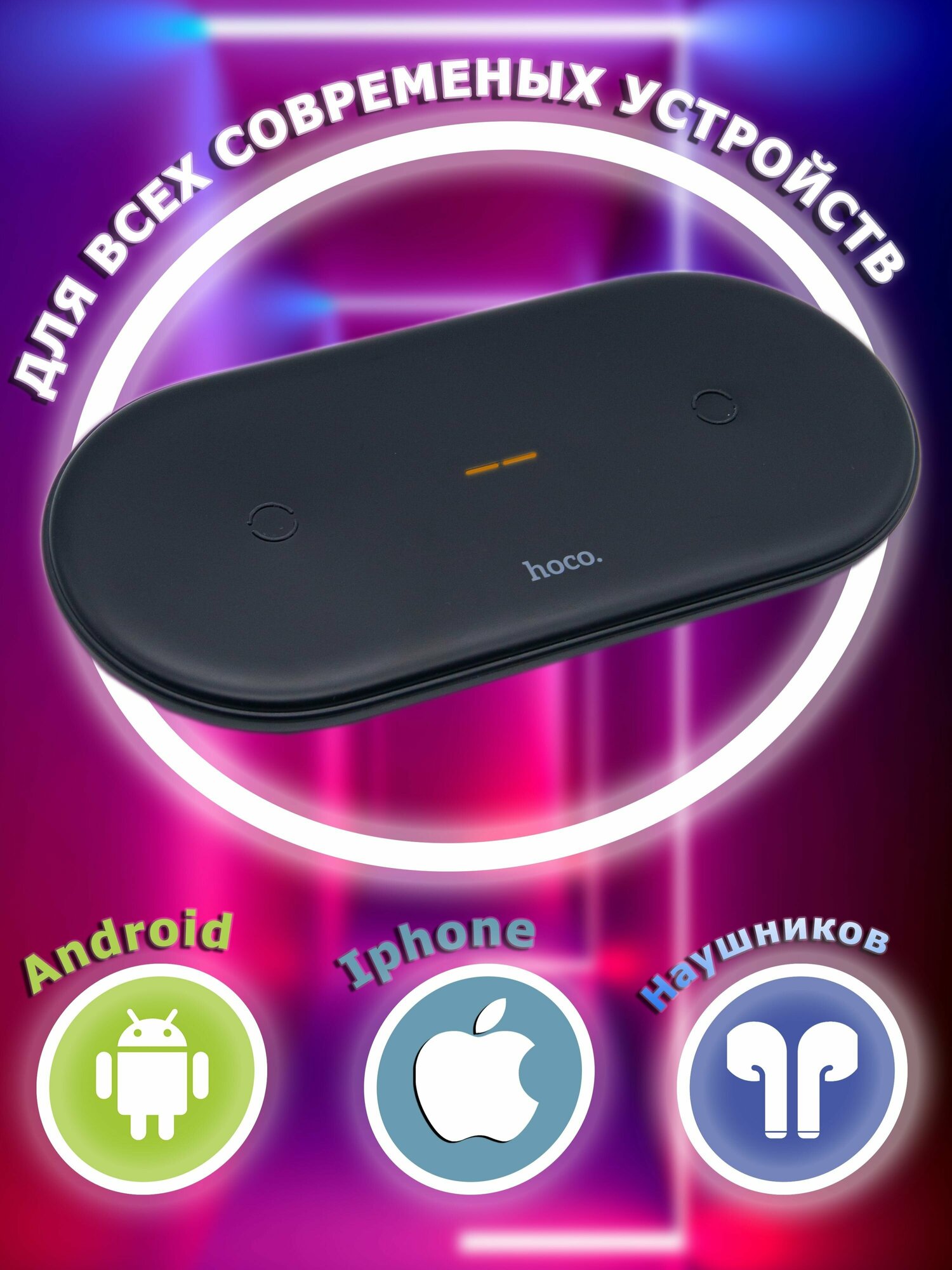Отзывы на Беспроводное зарядное устройство Hoco CW23 Dual power, мощность Qi: 5 Вт, 7.5 Вт, 10 Вт, black