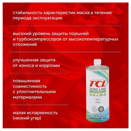 Масло моторное TCL Zero Line Fully Synth, Fuel Economy, SP, GF-6, 0W20, 1л TCL Z0010020SP | цена за 1 шт информация: