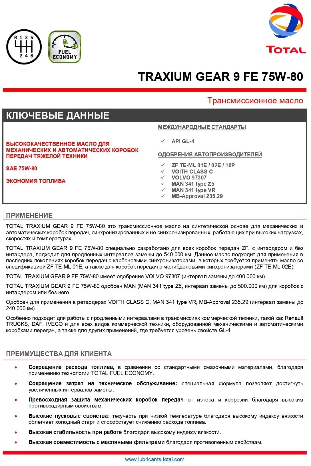 TRAXIUM Gear 9 FE 75W80, 20л информация: