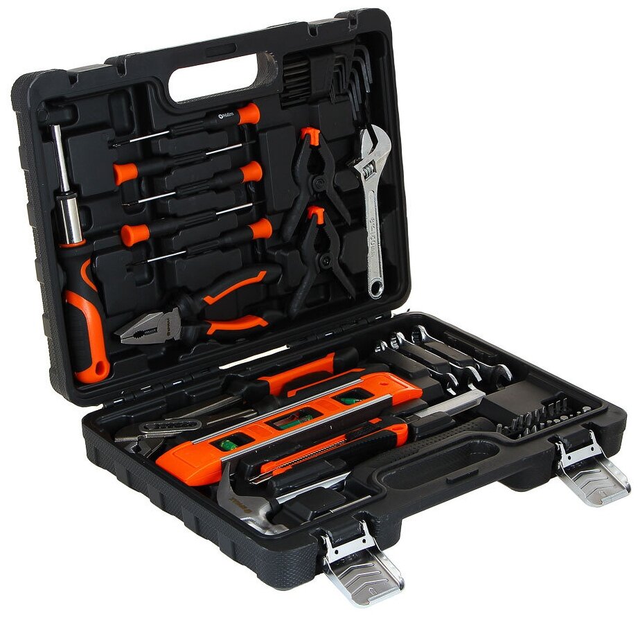 | Инструменты в комплекте | клещи / клещи переставные / ключ разводной / ключи имбусовые (шестигранные) / молоток / отвёртки / пассатижи / струбцина / биты / держатель для бит / комбинированный ключ / нож / переходник / Уровень |