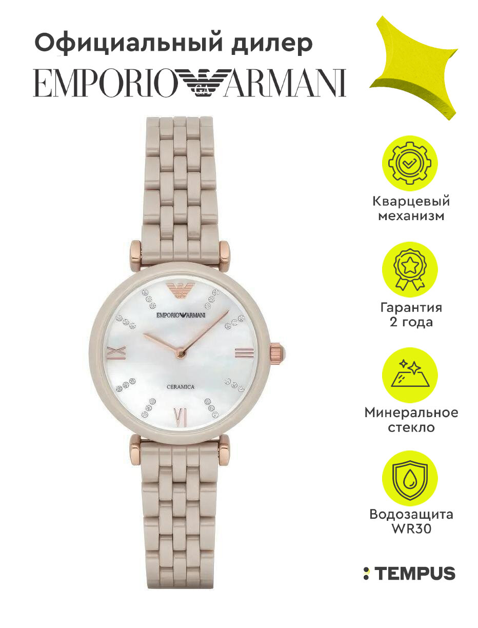 Часы наручные женские Emporio Armani AR11609 кварцевые на стальном браслете золотистого цвета с минеральным стеклом водонепроницаемостью WR50 (5 атм)