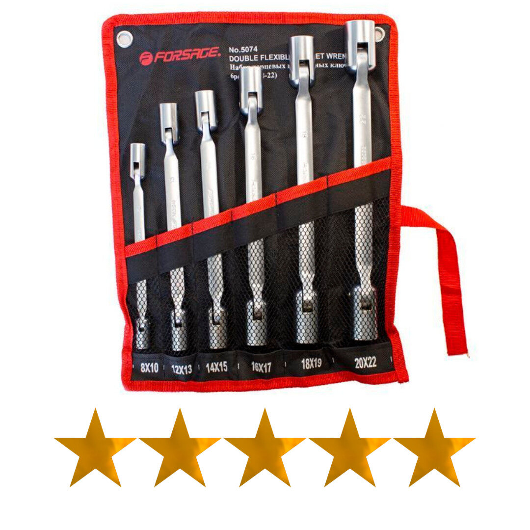 FORSAGE F5074 F-5074_набор ключей торцевых шарнирных! 6пр., 8х10, 12х13, 14х15, 16х17, 18х19, 20х22мм, на полотне\