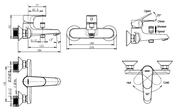 | Длина излива | 184 мм |