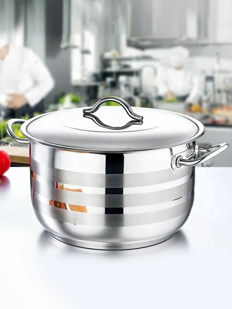 10 цен на Кастрюля из нержавеющей стали 4,6л с крышкой 22 см. O.M.S. Collection. Подходит для всех типов плит включая индукционные плиты.