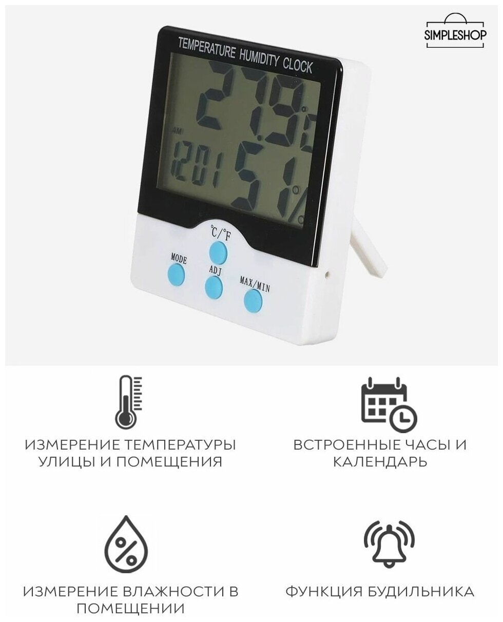 10 цен на Цифровой термометр и гидрометр/измеряет влажность в помещение, выносной уличный датчик температуры, часы, будильник/домашняя метеостанция НТС-2A