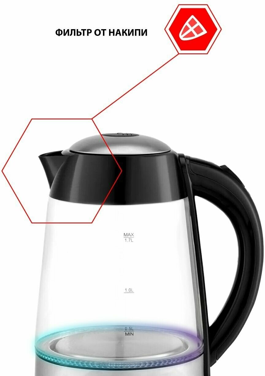Электрический чайник JVC JK-KE1705, пластик, стекло, черный, 2200Вт, 1,7л