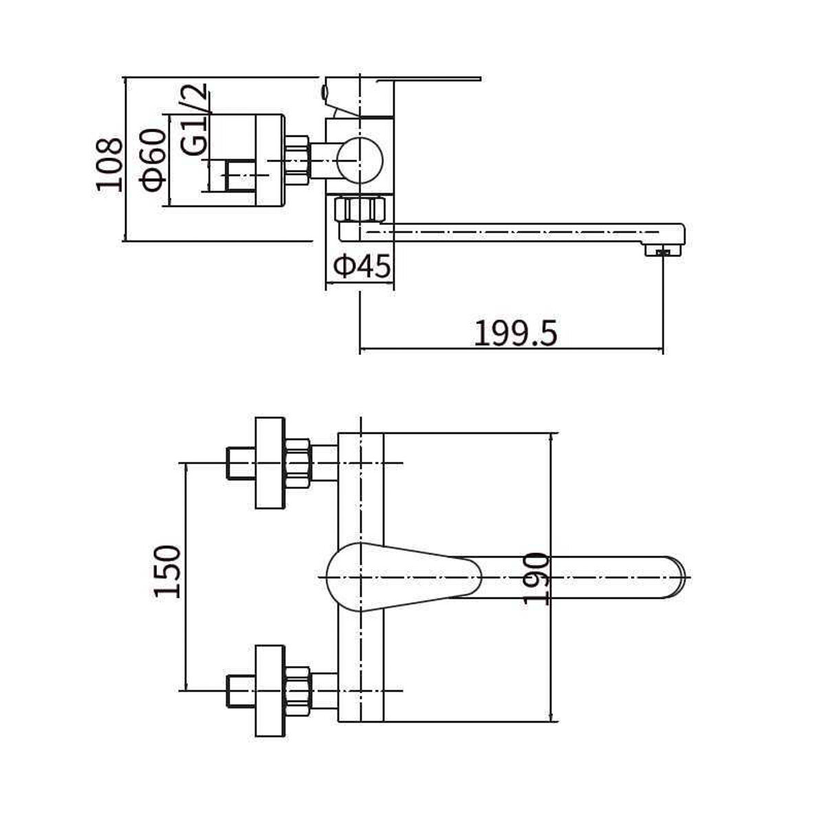 Смеситель на раковину настенный Эверест B46-350 с круглым поворотным изливом, кран-буксы 1/2", хром