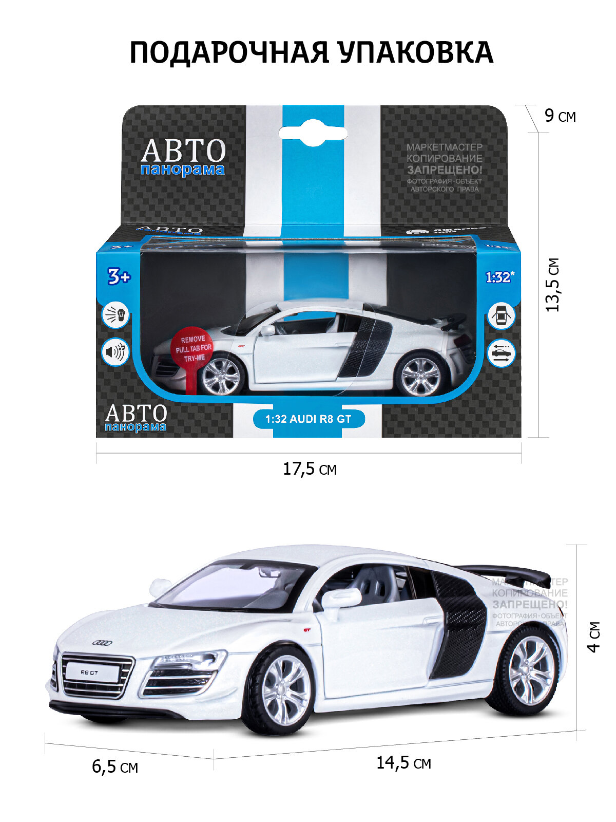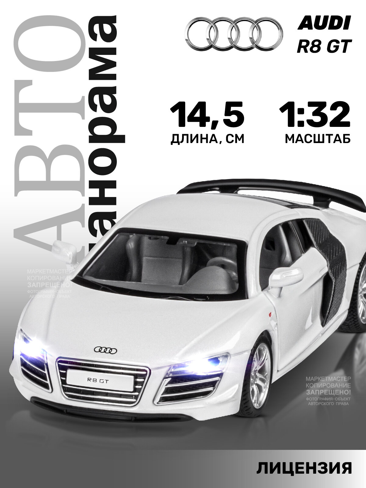 Машинка металлическая Автопанорама 1:32, Audi R8 GT, белый, инерция, свет, звук, открываются двери (JB1251310)