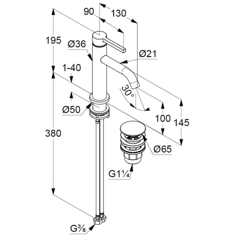 Смеситель для раковины (умывальника) KLUDI Pure&Easy Care 37284 0565, рычажный