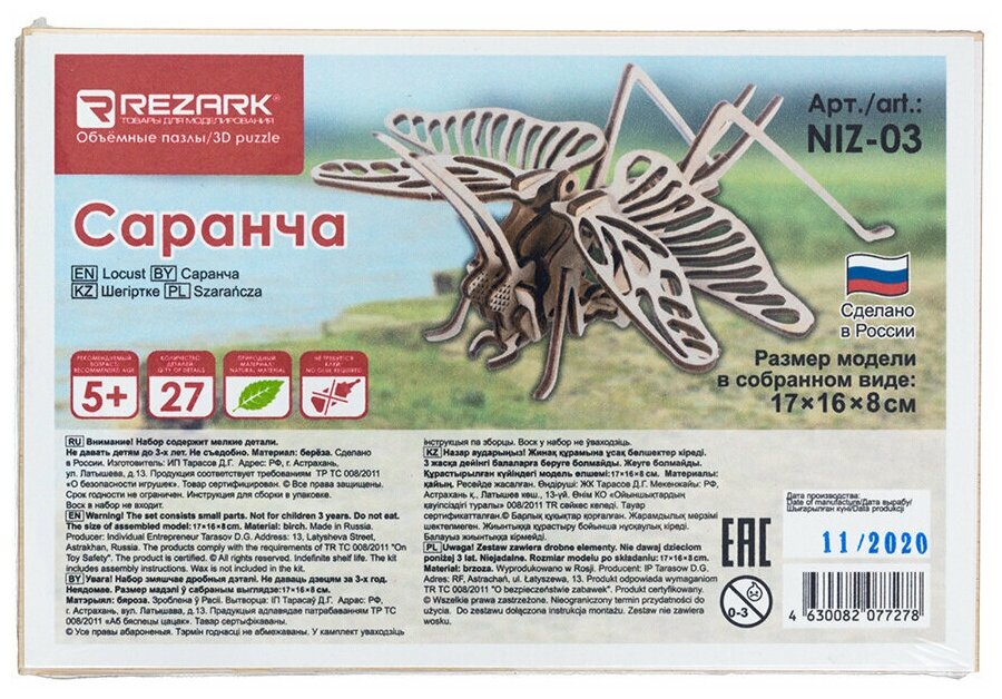 творч._сборные модели_rezark пазл 3d саранча 8E7025 информация:
