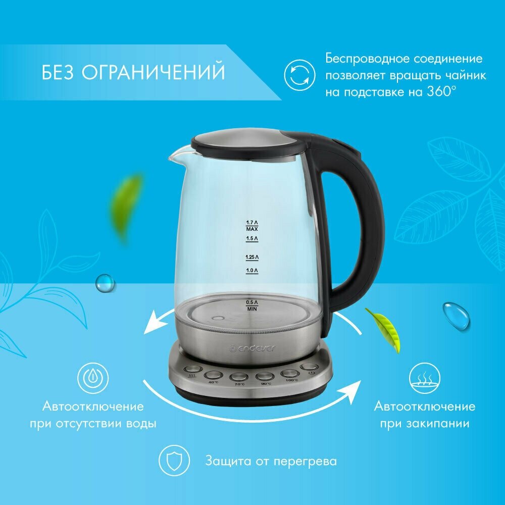 Чайник электрический стеклянный Endever KR-370G / 1,7л / 2200 Вт / 4 температурных режима