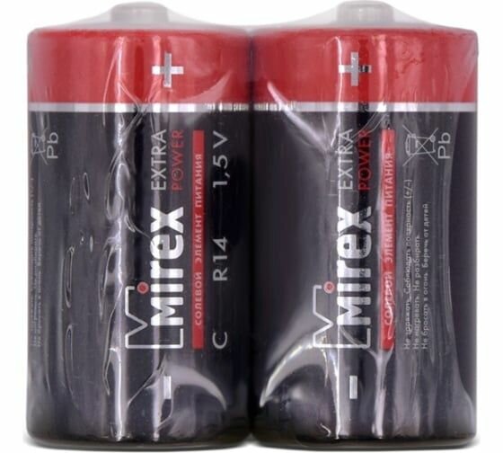 Батарея Mirex, солевая R14 / C 1,5V 2 шт shrink 23702-ER14-S2 информация: