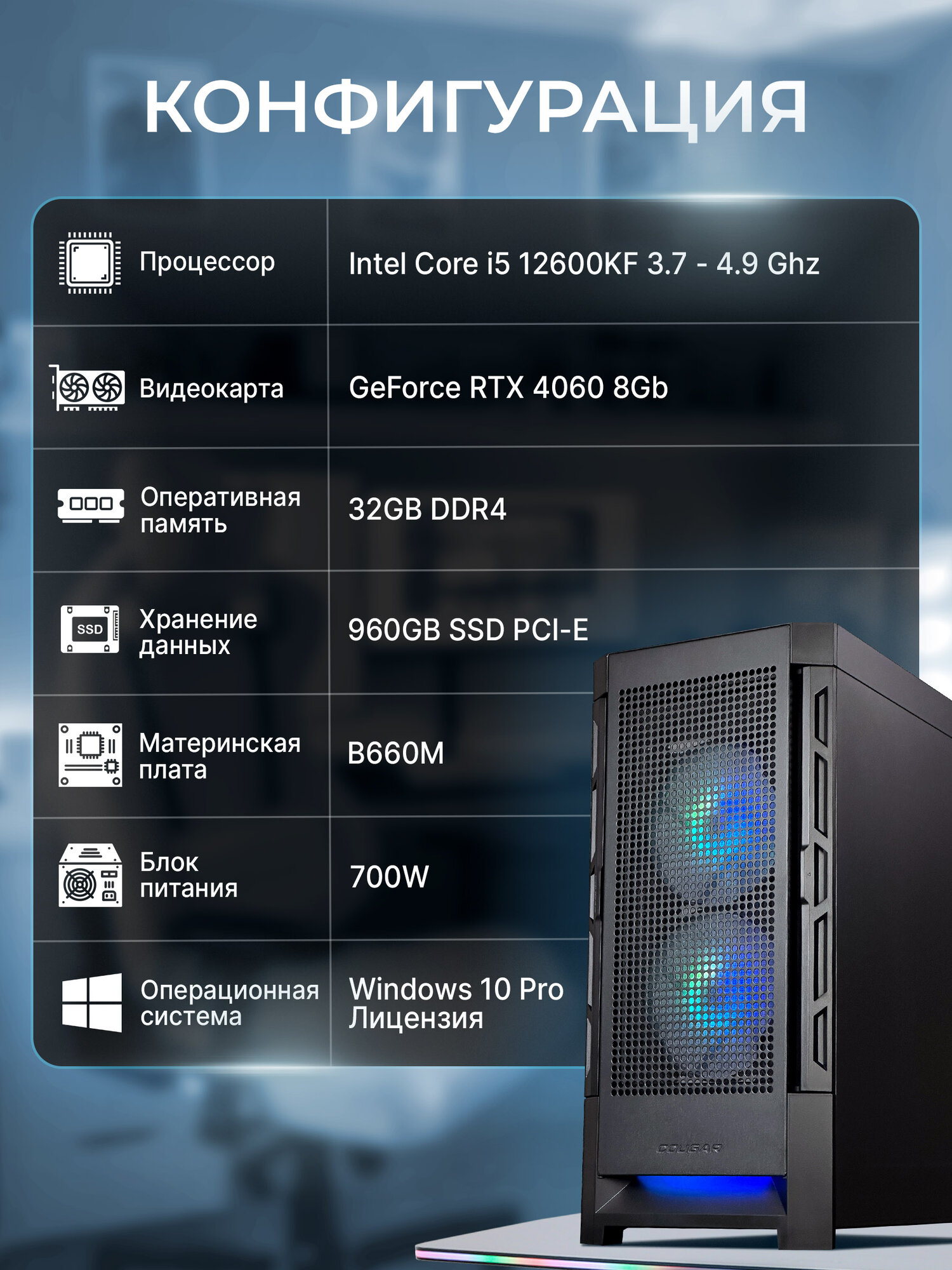 Системный блок Intel Core i5-12400F, RAM 32ГБ, SSD NVMe 512ГБ, NVIDIA GeForce RTX 3060 (12 Гб)
