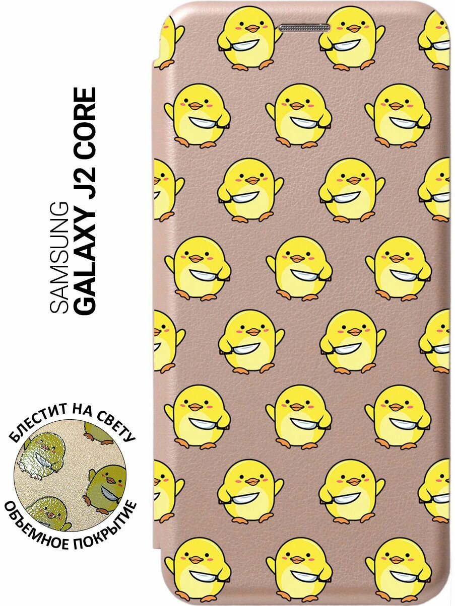 Чехол-книжка на Samsung Galaxy J2 Core / Самсунг Джей 2 Кор с 3D принтом "Chick With Knife" золотистый информация: