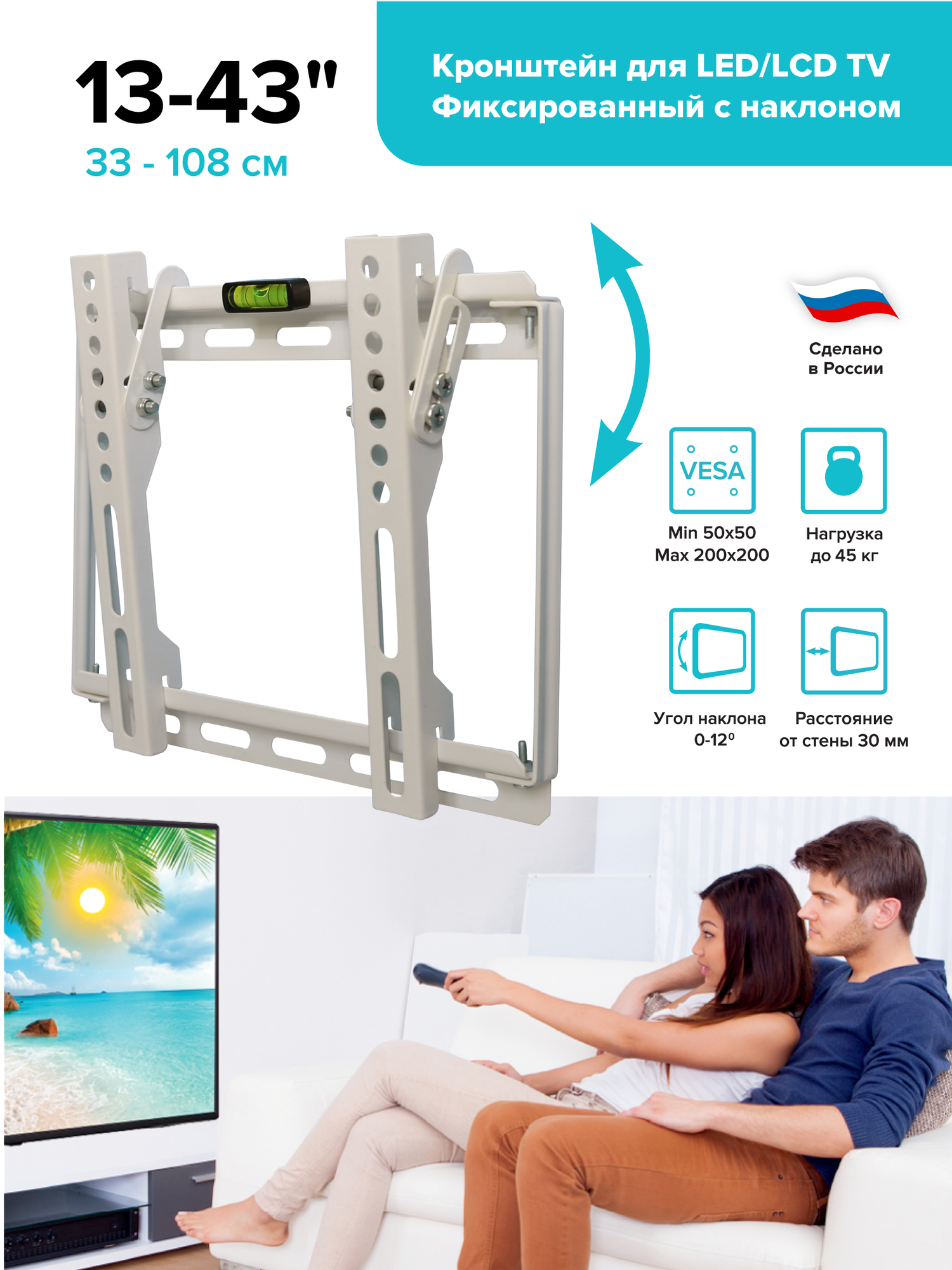 10 цен на Кронштейн для ТВ Фиксированный с наклоном 13-43" белый АС-3-4/2 Absolute Comfort. Крепление (держатель) для тв монитора на стену vesa