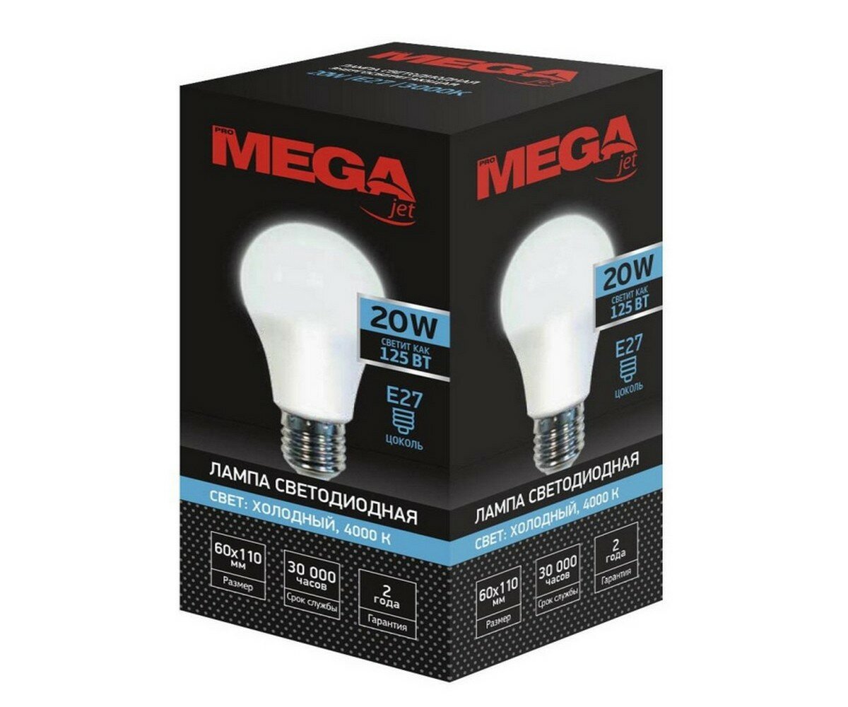 Отзывы на Лампа светодиодная Mega 20 Вт E27 колба 4000K нейтральный белый свет ProMega jet 1041521