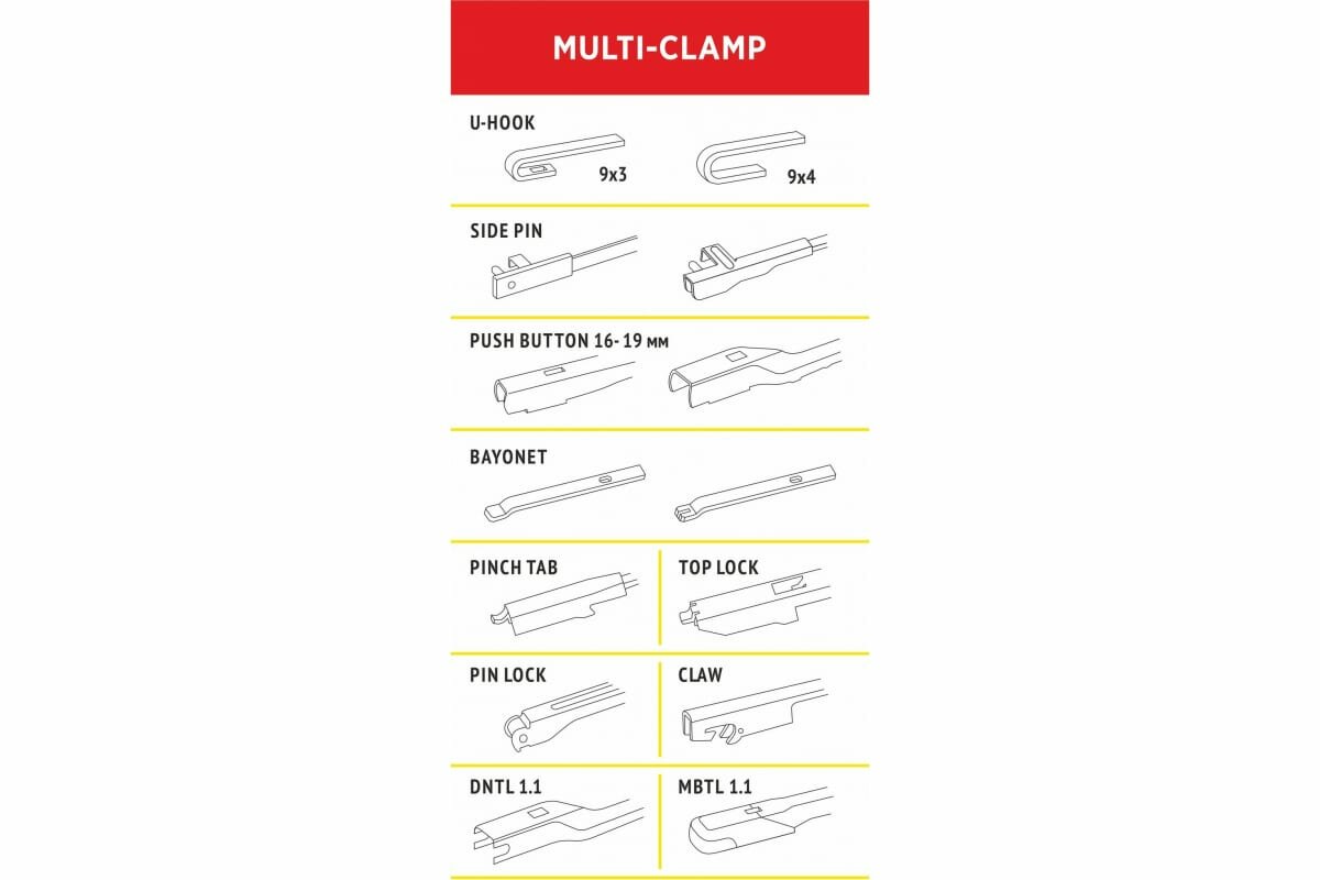 Щетка стеклоочистителя бескаркасная 450мм с комплектом адаптеров (10 шт.) WOG арт. WGC1404