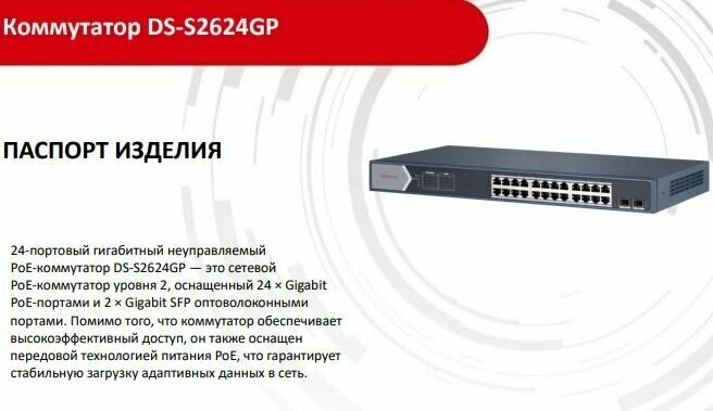 Коммутатор HiWatch Ds-s2624gp . информация: